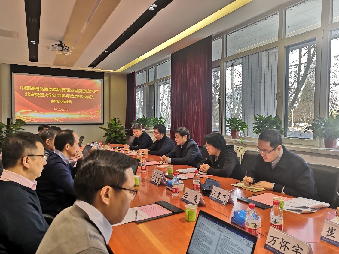 2023年2月16日上午,中国铁路北京局集团有限公司信息技术所(以下简称“中国铁路北京局信息技术所”)主任李伟、总工程师刘韶霞、副主任张海泉等一行六人来访伟德国际1946bv官网,与伟德国际1946bv官网院长蔡伯根、大数据研究院院长林友芳、伟德国际1946bv官网副院长景丽萍等八人,就大数据方向培训等事宜进行合作交流。