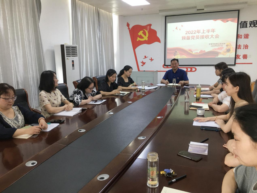 2022年6月7日下午,SUNBET申搏官方网站教工党支部在党员之家召开了2022年上半年预备党员接收大会。会议由教工党支部书记谭冠文主持。SUNBET申搏官方网站党总支书记雷雨广、全体教工支部党员及两名发展对象参加了本次会议。