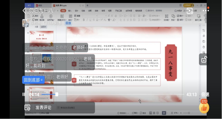 牢记历史,就是开创未来。为教育广大青年学生不忘国耻,珍爱和平,增强爱国主义意识,SUNBET申搏官方网站于9月28日晚,通过线上钉钉开展了“勿忘九一八,吾辈当自强”主题党课活动。本次党课由SUNBET申搏官方网站李桂林老师主讲,SUNBET申搏官方网站部分党员教师及21级积极分子聆听了此次党课。