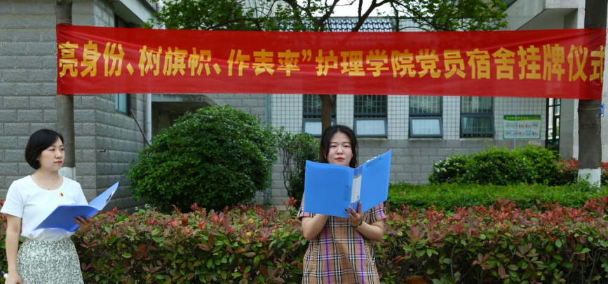 活动第一项由学生代表21级护理07班曾心发言。她表示通过此次“党员宿舍挂牌”活动,要求自己要时刻以党员的标准严格要求自己,充分发挥党员在日常学习生活中的模范带头作用,带领大家养成良好的生活习惯,形成积极向上的学习风气。