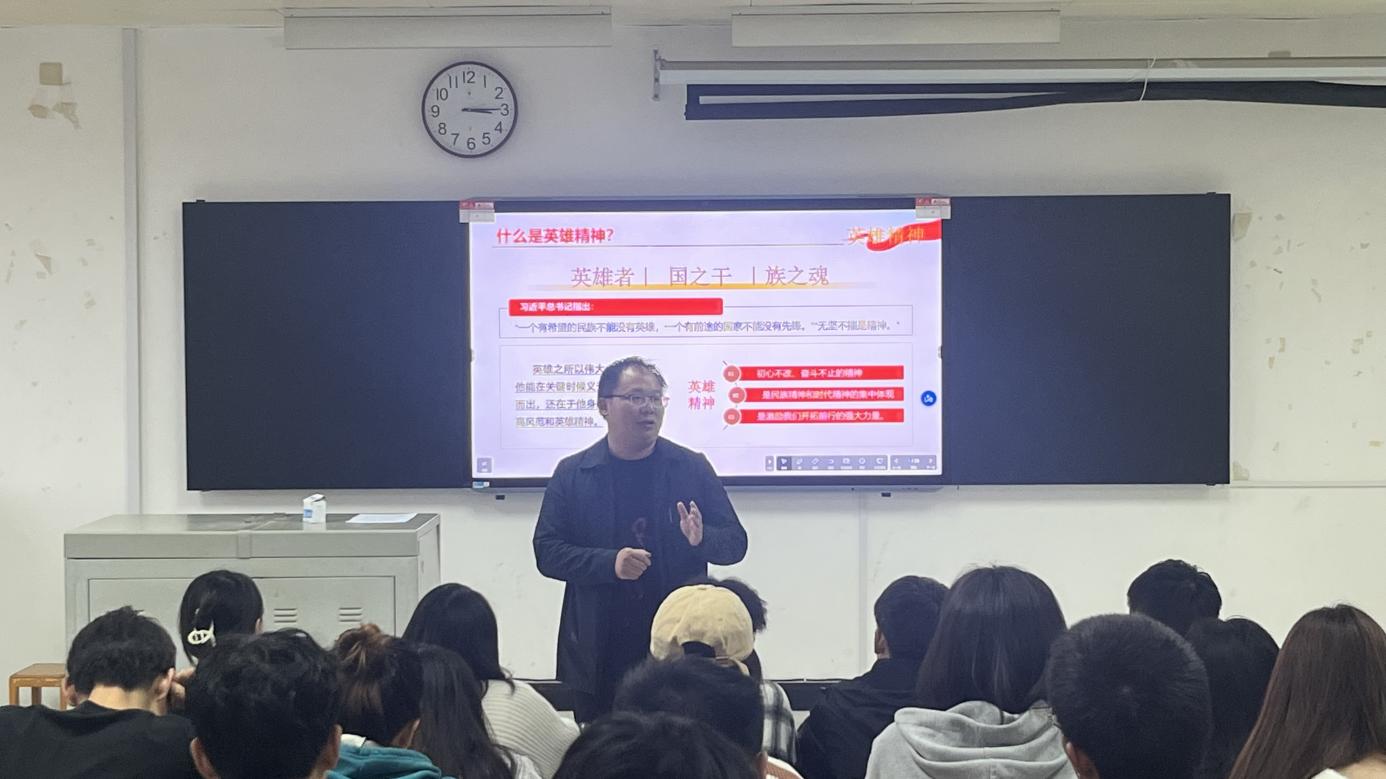 刘斌老师首先向我们介绍了什么是英雄精神,正如鲁迅先生说:“我们自古以来,就有埋头苦干的人,有拼命硬干的人,有为民请命的人,有舍身求法的人……这就是中国的脊梁。”其次讲述了弘扬英雄精神的意义,最后,讲述了如何弘扬、学习和传承英雄精神。中华民族是英雄辈出的民族,新时代是成就英雄的时代。崇尚英雄才会产生英雄,争做英雄才能英雄辈出,关爱英雄才能让更多人记住英雄。大力弘扬英雄精神,需要每一个人的参与,需要每一名青年学子践行传承。需要坚定信仰,尊重英雄,铭记英雄,读懂我们国家民族的过去、现在和未来,要从英雄身上汲取奋发的力量,共同推进社会主义伟大事业,实现中华民族伟大复兴。