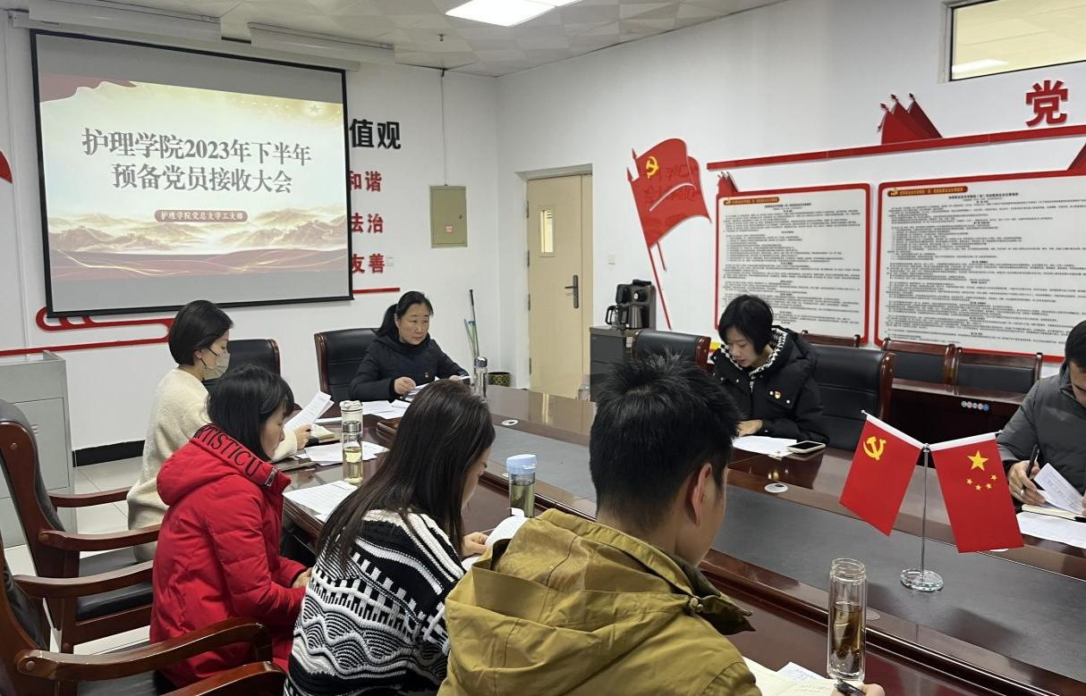2023年12月15日,SUNBET申搏官方网站学工党支部在“党员之家”召开了2023年下半年预备党员接收大会。SUNBET申搏官方网站党总支书记王虹、学工党支部全体党员及入党介绍人参加了本次会议,会议由党总支副书记李鑫汝主持。