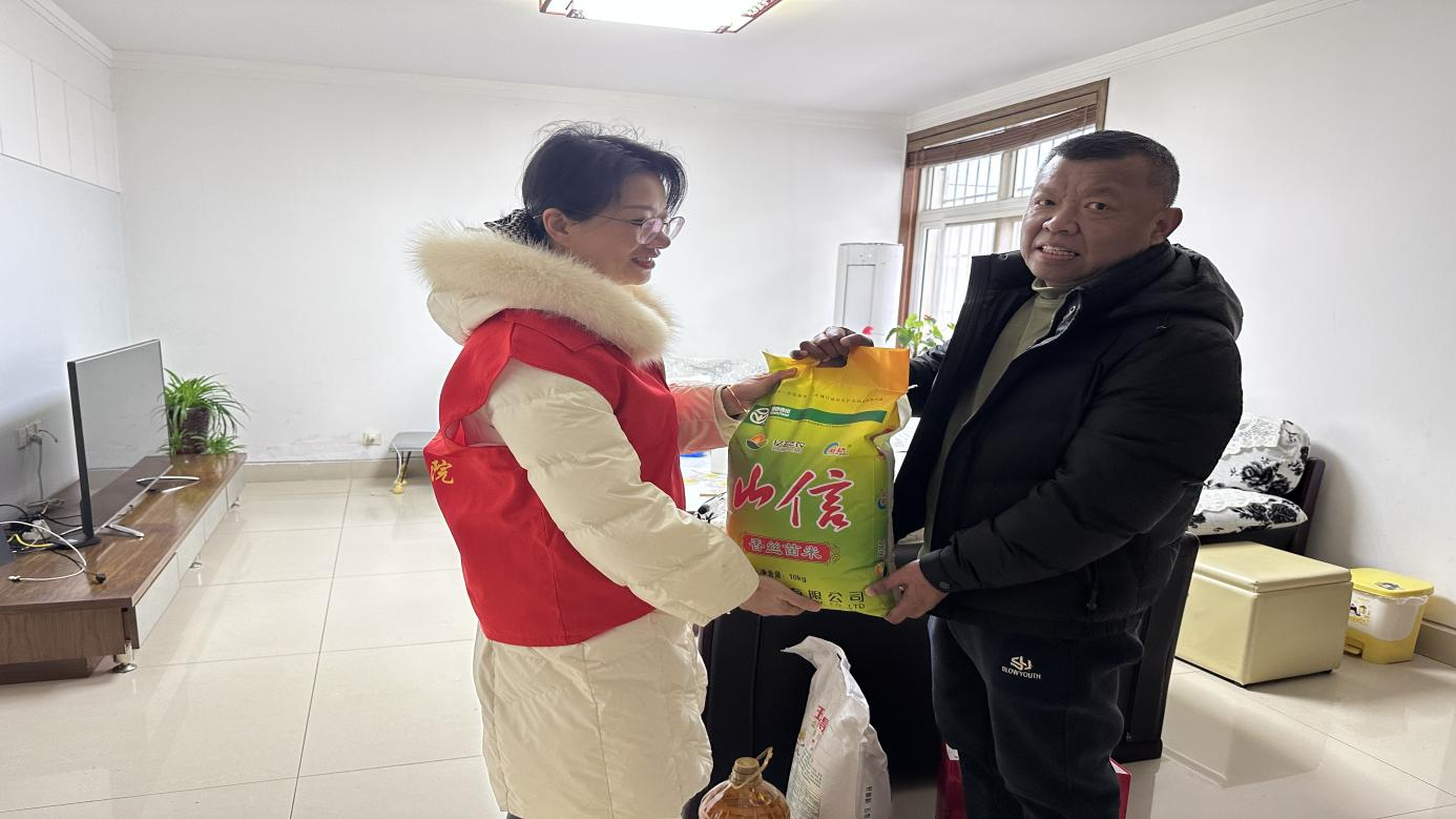 春节来临之际,为了让因病困难家庭过一个祥和欢乐的春节2024年1月29日,SUNBET申搏官方网站党总支书记王虹、院长陈超带领部分党员教师前往义阳社区开展“支部联支部”春节慰问活动为他们送去暖心粮油、礼品等生活物资缓解他们的经济压力,疏导他们的心理情绪,把SUNBET申搏官方网站党支部的温暖关怀和爱心帮扶送到他们家中