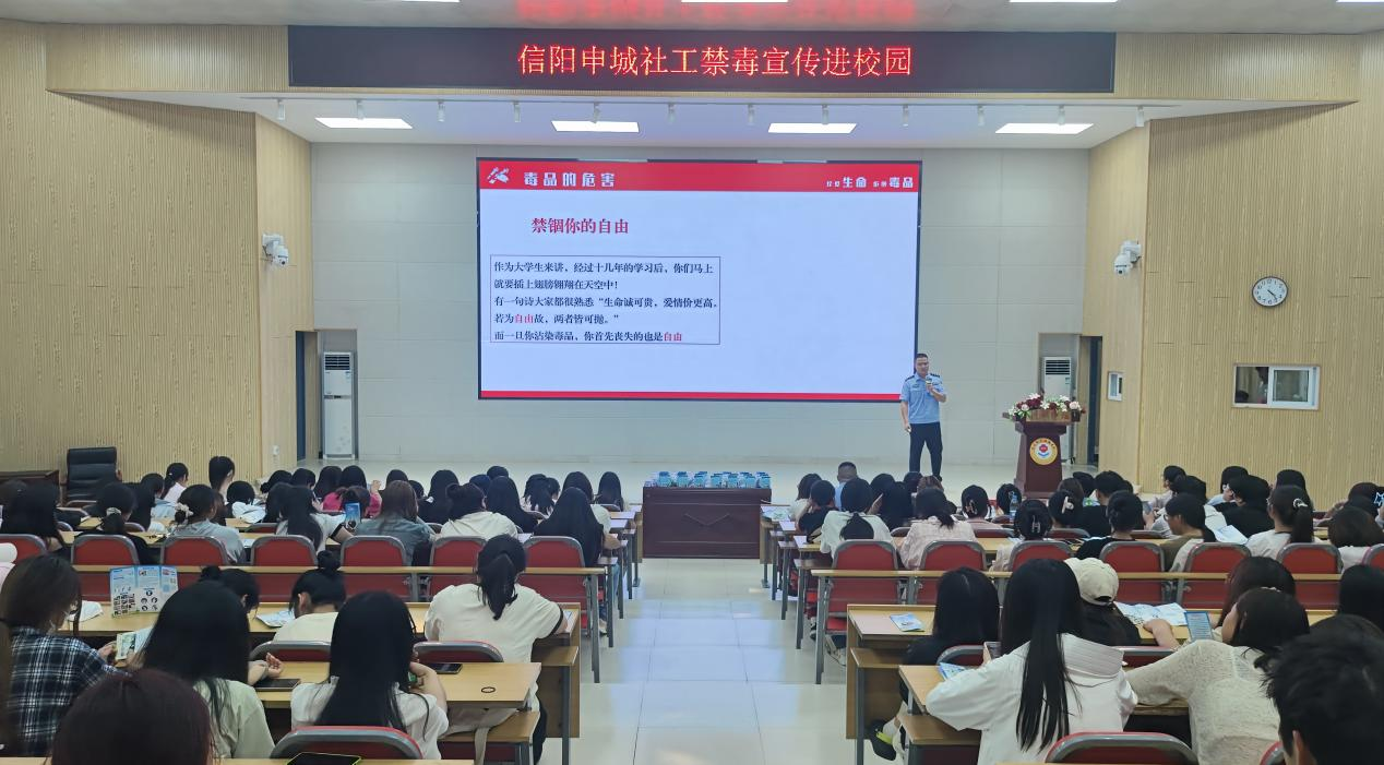 为进一步加大禁毒宣传力度,广泛普及禁毒知识,提高青年学生识毒、防毒、拒毒意识,营造健康无毒的校园环境。2024年6月11日,SUNBET申搏官方网站联合信阳市强制隔离戒毒所在行知讲堂举行健康人生 绿色无毒”禁毒知识讲座。