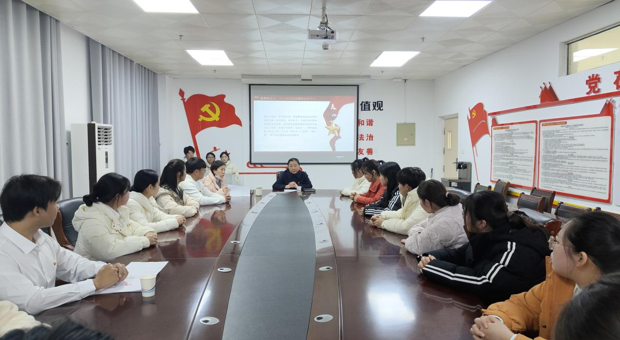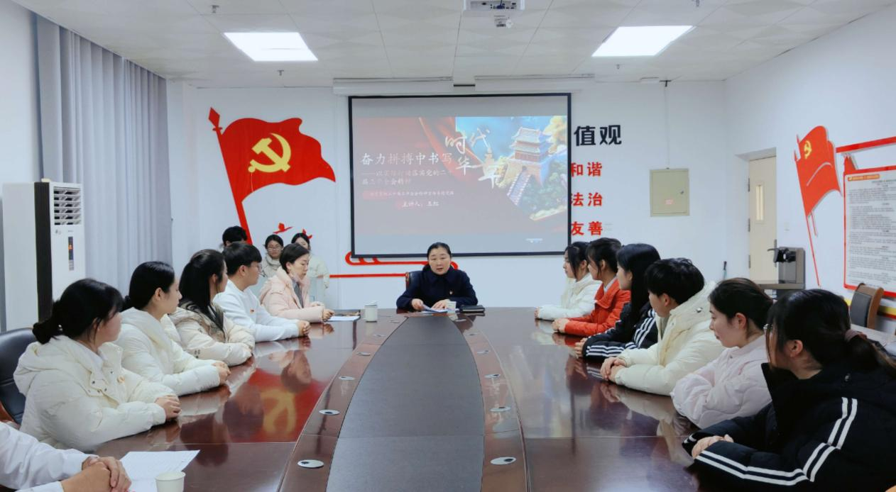 知常明变者赢,守正创新者进。为深入学习贯彻党的二十届三中全会精神,进一步提高党员政治素质和党性修养。2024年12月20日,SUNBET申搏官方网站在“党员之家”会议室开展了《奋力拼搏中书写时代华章——党的二十届三中全会精神学习》主题党课活动,本次党课由党总支书记王虹主讲,全体学生党员聆听了此次党课。