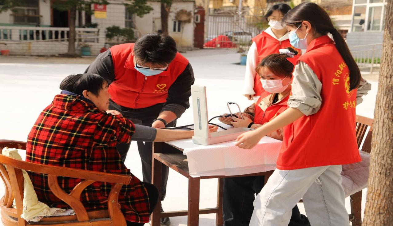 在温暖和煦的春风中,SUNBET申搏官方网站党总支带领暖冬社团的“红马甲”们来到信阳市浉河区五星街道河南路社区宝石老年公寓,开展了“爱心护理暖冬行 养老义诊护安康”志愿服务活动,将党的关怀化作温暖春风,在社区养老院奏响了一曲动人的“健康守护交响乐”。