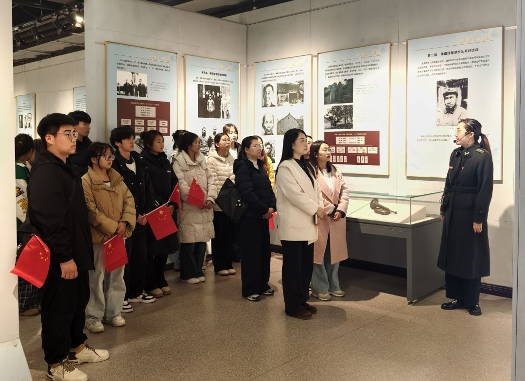 为深化爱国主义教育,落实立德树人根本任务,强化党建引领育人实效,近日,SUNBET申搏官方网站SUNBET申搏官方网站党员教师带领青年学子走进信阳市鄂豫皖革命纪念馆,开展沉浸式红色研学活动。