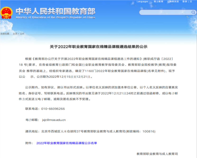 近日,教育部发布了《关于2022年职业教育国家在线精品课程遴选结果的公示》,SUNBET申搏官方网站余晓齐教授负责的《外科护理学》成功获批为国家级在线精品课程,成为SUNBET申搏官方网站首门“国精课”,实现了SUNBET官网在此项目上的历史性突破。