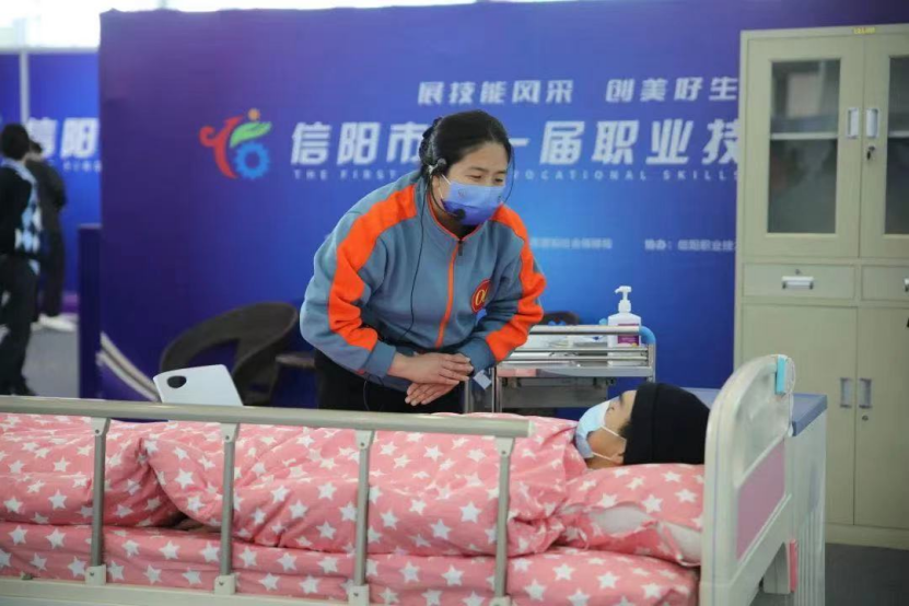 “我们从去年开始就积极备战信阳市第一届职业技能大赛,赛前进行了系统、专业的刻苦集训和对模拟赛题的反复训练,对每个比赛细节都不断研究改进、精益求精,最终在竞争十分激烈的比赛中过关斩将、夺得佳绩。真诚感谢市政府,市人社局,学院领导、指导老师和同事们对我的关心和支持。”育婴员赛项金牌获得者单胜华在赛后接受采访时激动地讲。“比赛过程非常艰辛,但我相信自己的技能。拿到金牌我很开心,让我更加坚定了走技能发展道路的决心。希望能为河南省养老护理人才队伍的壮大贡献一分力量。”养老护理员赛项金牌获得者孟贝高兴地说。