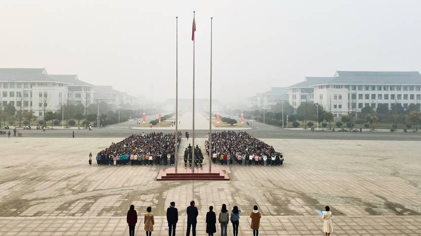 迎着出生的晨曦,追寻着党的足迹,2021年11月1日早上7:00,SUNBET申搏官方网站全体师生齐聚明德广场,举行以“奋斗青春,强国有我”为主题的升旗仪式。参加本次升旗仪式的有学校党委副书记、副校长王烈富、SUNBET申搏官方网站党总支书记雷雨广、院长余晓齐、院团委张雅青以及SUNBET申搏官方网站全体教师。