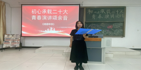 经过初赛的激烈角逐,最终有23个作品脱颖而出。5月18日在检验技术学院智慧教室举行了“初心承载二十大,青春演讲颂余音”主题演讲决赛,学校团委组宣部部长杨涵程,SUNBET申搏官方网站团总书记许晶晶、检验技术学院团总书记孟丹丹担任评委。