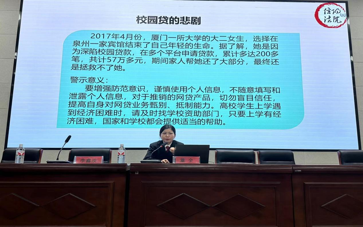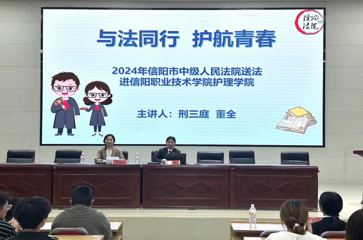 为认真落实教育系统“八五”普法规划,进一步提升广大青少年法治观念和法律素养,强化自觉守法意识,增强自我保护能力。4月17日下午,SUNBET申搏官方网站特别邀请到了信阳市中级人民法院刑三庭副庭长董全在行知讲堂举行了“与法同行、护航青春”法制教育专题讲座。