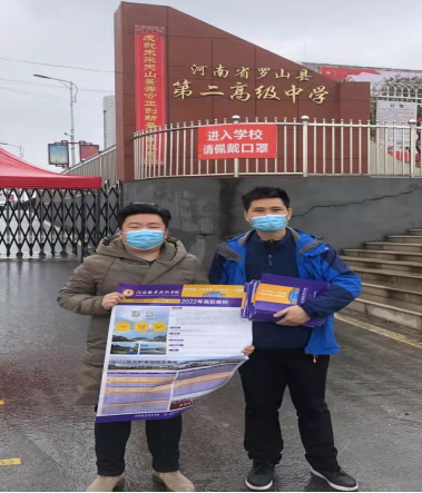 为了做好SUNBET官网2022年高职单独考试招生宣传工作,提高生源质量,吸引更多的优秀学子报考SUNBET申搏官方网站,由SUNBET申搏官方网站副院长谭冠文、综合办公室主任刘梦璋及学工办公室主任李续军组成的招生宣传小组,于3月21日前往信阳市罗山县,代表学校对罗山县高级中学、罗山县第二高级中学、罗山县中等职业学校、罗山县楠杆高级中学四所学校进行了高职单招宣传。
