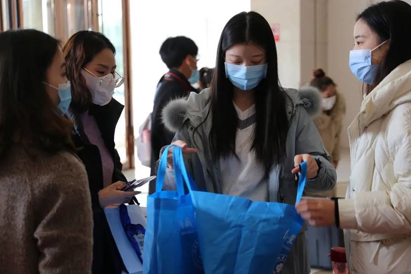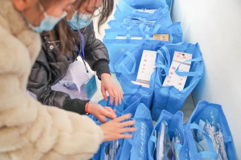蓝色袋子装着对参赛者的真诚祝福