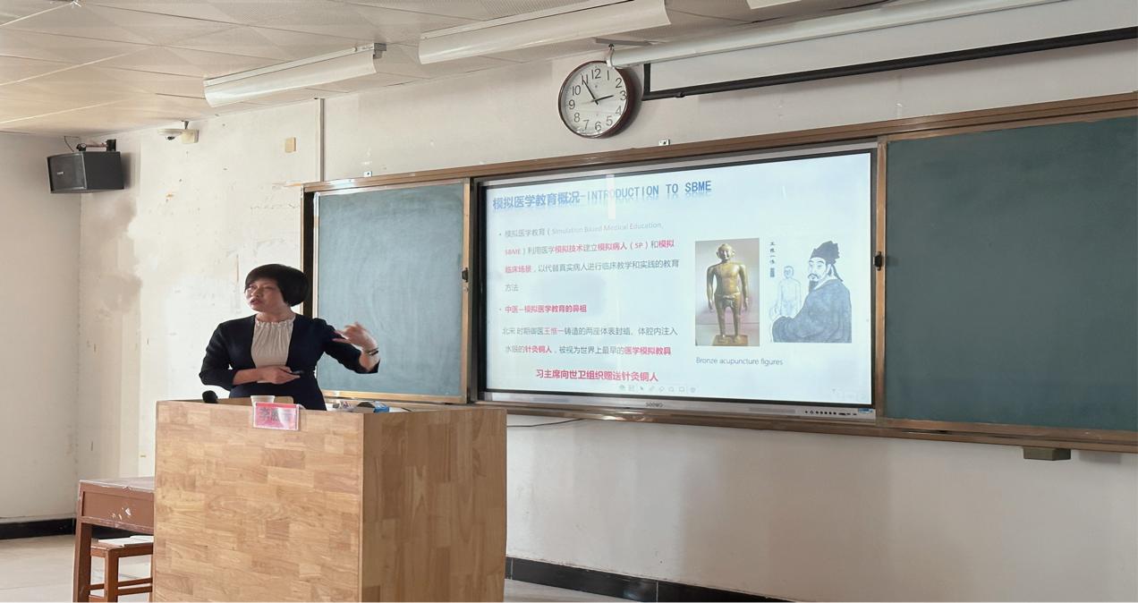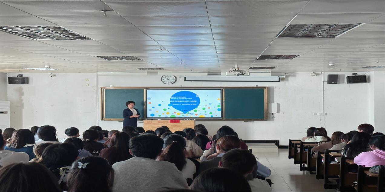 李胜云主任结合护理临床实际工作从模拟医学教育概况、情境模拟教学设计、情境模拟教学案例演示、模拟医学教育科研方向等方面分享了自己的经验和观点。李主任指出学科建设是高校建设和发展的核心,是整体办学实力、学术地位和核心竞争力的体现。她重点解读了新时代医学教育的新特点背景下,护理学发展的思考与建议。她强调要以科研带动创新型人才培养,在科研过程中提高教学水平。整场报告会主题鲜明、重点突出,为SUNBET申搏官方网站学子们带来生动的一课。