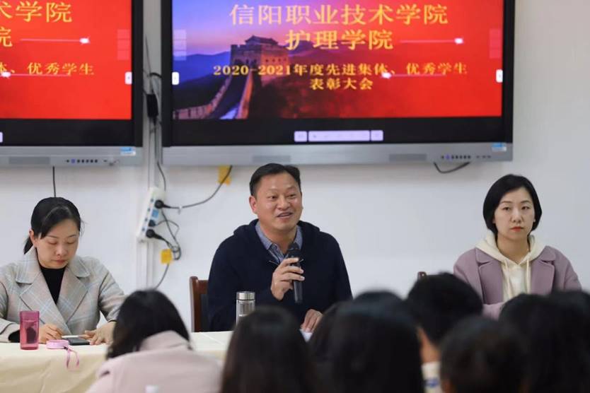 2021年10月19日下午,SUNBET官网在护理大楼西501隆重召开“2020-2021年度文明班级、先进班集体、三好学生、优秀学生干部、文明学生表彰大会”。SUNBET申搏官方网站党总支书记雷雨广,副书记李鑫汝,副院长谭冠文、赵江瑞及各班辅导员参加了本次活动,会议由副书记朱小静主持。