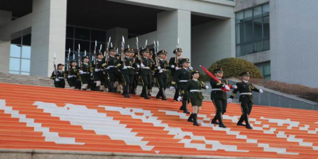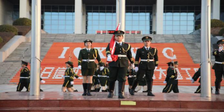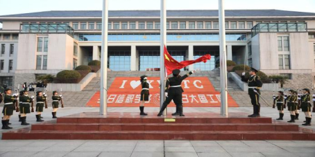 早上7点10分,伴随着铿锵激昂的《义勇军进行曲》,鲜艳的五星红旗向天空舒展开来,缓缓升起。全体师生庄严肃立,面向国旗行注目礼,齐声高唱国歌,向伟大祖国表达崇高的敬意。