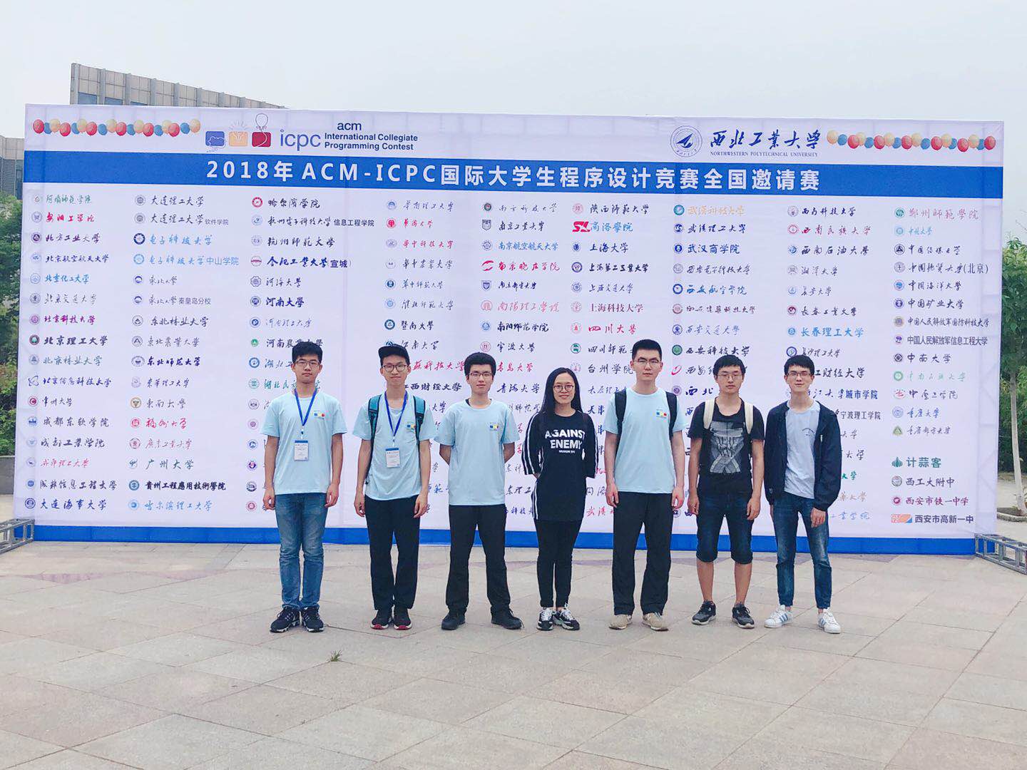 江苏请赛合影:王典、金睿琦、王显龙、许华婷(教练)、王天舒、郑黎明、何卫锋
