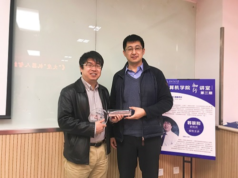 2018年11月22日, 伟德国际1946bv官网“知行讲堂”第三期邀请到中科院计算所韩银和研究员做了题为《“大度”机器人智能芯片》的精彩报告。