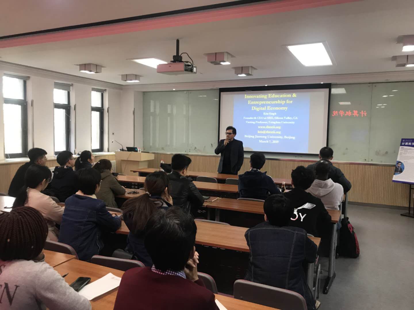 2019年3月7日,伟德国际1946bv官网“知行讲堂”第七期邀请到SRII公司创始人与CEO Kris Singh教授,做了题为《数字经济下的创新教育与创业》的精彩报告。