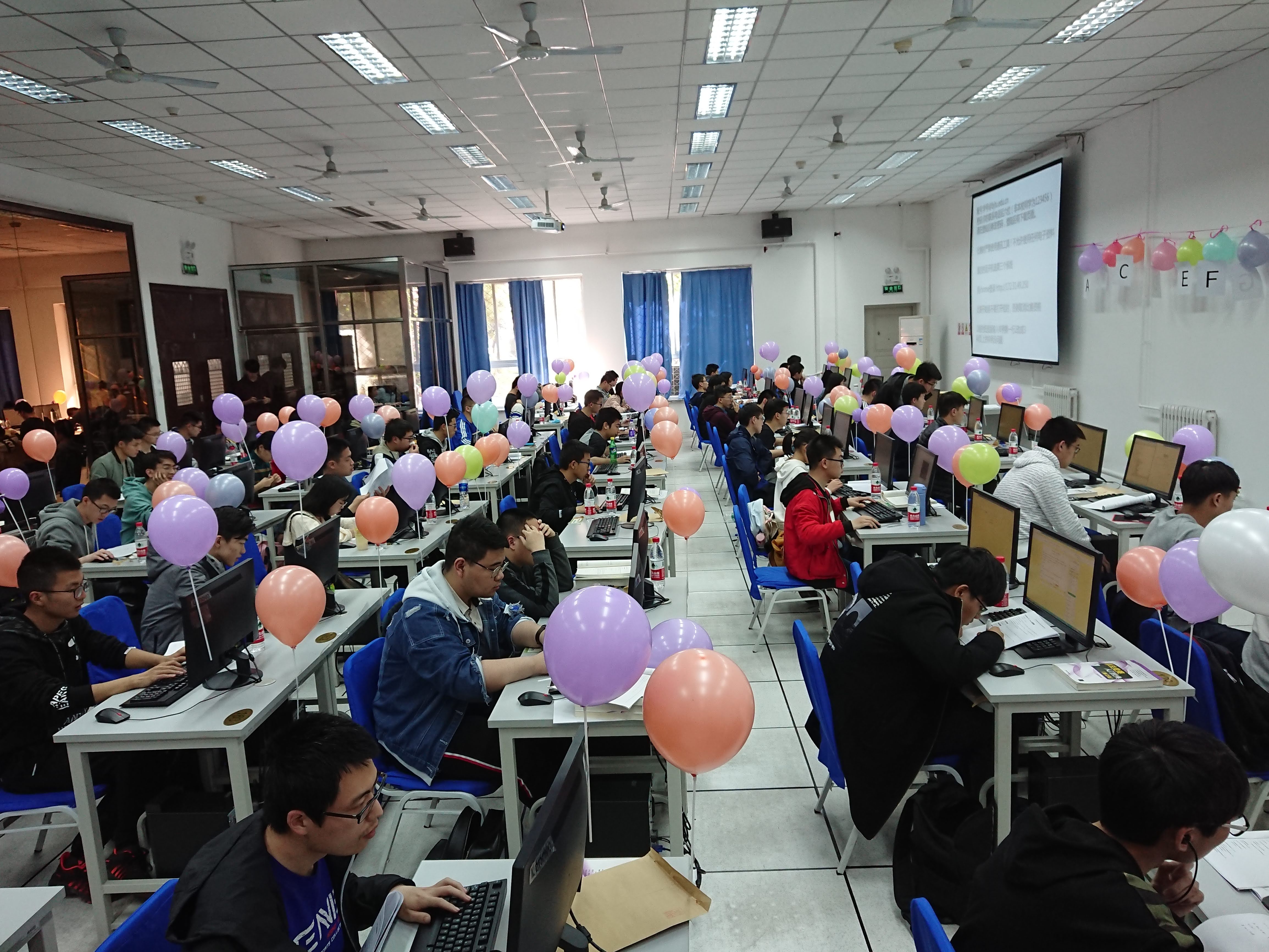 伟德国际1946bv官网主管教学院领导、教学管理部门、计算机基础教学基地东校区机房对赛事举办的高度重视和大力支持,为赛事的顺利开展提供了充分的保障。华为技术有限公司赞助了本次比赛,为获取学生提供了奖金并为赛事组织提供了支持,深表感谢。赛事筹备阶段,学院对赛事活动开展作了周密部署,依托ACM-ICPC校队和学生兴趣社团“算法俱乐部”精心组织实施,并提供各种支持。赛事宣传筹备工作于本学期刚开始即正式启动,期间开展了持续的宣传报名活动,共有来自全校各个学院的192名学生报名参加了此次比赛,并有来自北航、北邮、北林、矿大等周边兄弟院校的同学参与了此项赛事。