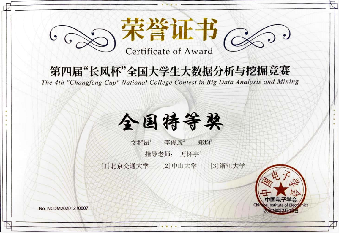 2020年12月6日,第四届 “长风杯”大数据分析与挖掘竞赛圆满闭幕,伟德官网两支本科生队伍喜获佳绩,分别获得全国特等奖和全国二等奖。