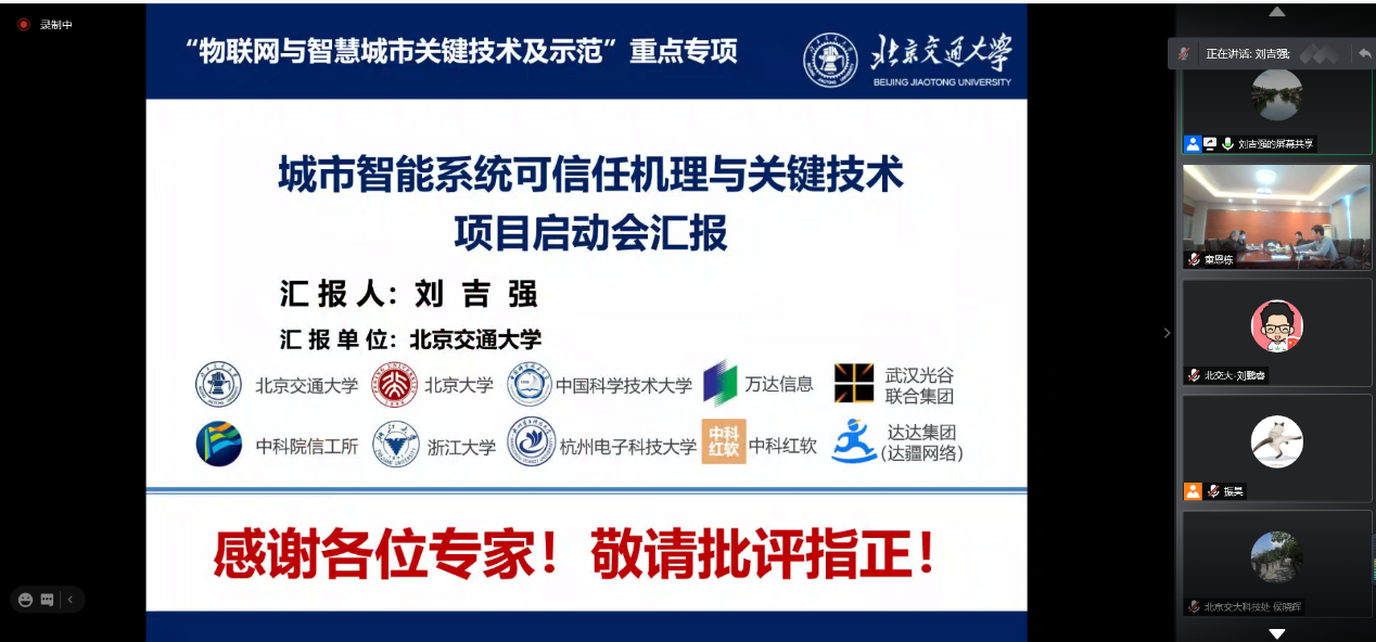 1月8日,由伟德国际1946bv官网牵头,伟德官网刘吉强教授承担的2020年国家重点研发计划“物联网与智慧城市关键技术及示范”重点专项项目“城市智能系统可信任机理与关键技术”项目启动会在线上成功召开。