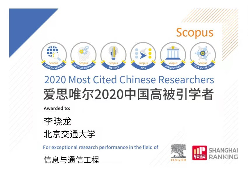 2021年4月22日,爱思唯尔(Elsevier) 重磅发布2020“中国高被引学者” (Highly Cited Chinese Researchers)榜单,上榜共计4023人,来自373所高校、企业及科研机构,覆盖了教育部10个学科领域、84个一级学科。计算机与信息技术学院李晓龙、王伟2位教授上榜。