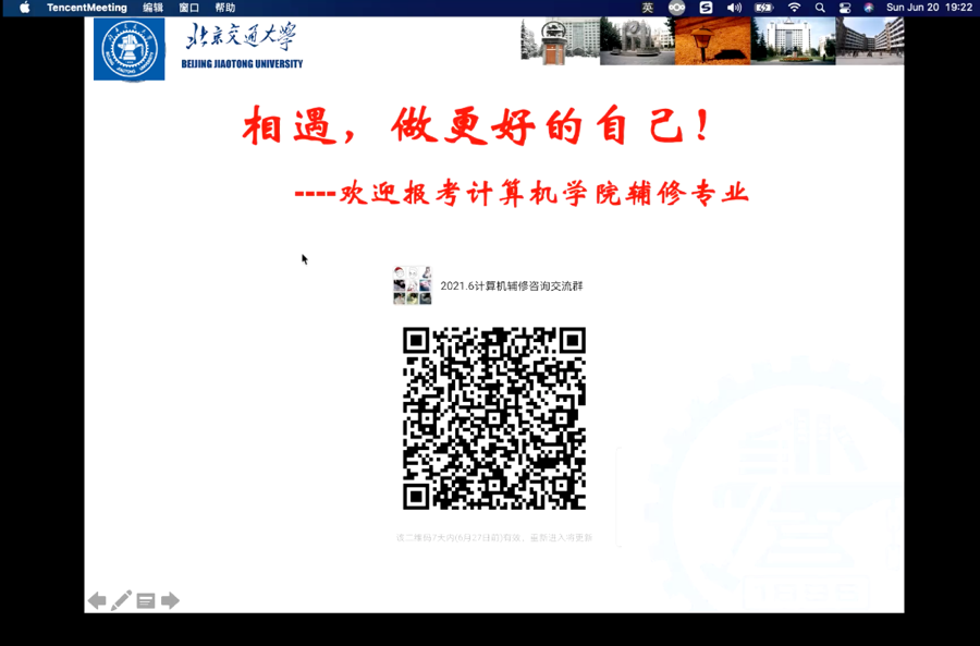 2021年6月20日晚7:00-9:00伟德国际1946bv官网通过腾讯会议召开2021年秋季学期辅修计算机科学与技术专业宣讲会。会议由学院负责辅修老师王光宇主持,本次会议邀请到伟德官网主管本科教学与培养的熊轲副院长,往届优秀辅修学生刘俊生、程昕洋、李海昕同学,来自全校其他数10个学院对辅修计算机专业感兴趣的同学参加了宣讲会。