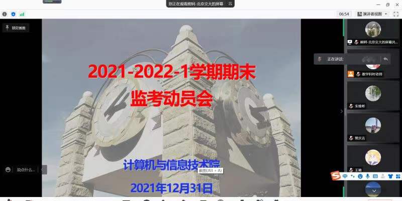 2021年12月31日下午17:00,伟德国际1946bv官网通过腾讯会议线上召开2021-2022-1学期期末考试监考动员会,会议由教学副院长熊轲主持,八十多名教师参加了会议。