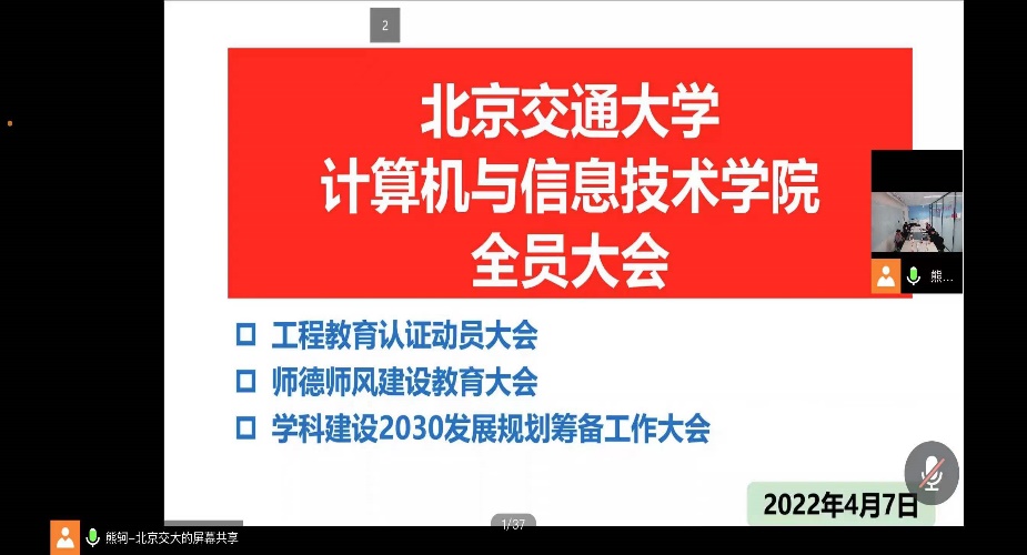 4月7日下午,为深入推进学院专业认证工作,伟德国际1946bv官网在逸夫楼101会议室召开工程教育专业认证动员大会。会议由副院长熊轲主持,院长蔡伯根、党委副书记段春荣、韦世奎,副院长李浥东、景丽萍出席会议,伟德国际1946bv官网全体教职工线上参加会议。