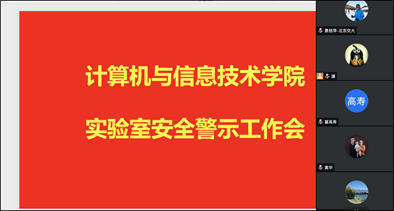 景丽萍副院长在会议上宣读了学院安全管理责任书内容,要求全体员工提高政治站位,强化安全红线意识,深刻认识实验室安全工作的重要性。并对近期检查发现的安全隐患问题进行了警示通报。最后对在疫情封校期间积极承担学院实验室安全巡视的吕凯、刘强两位老师表达了真诚谢意。