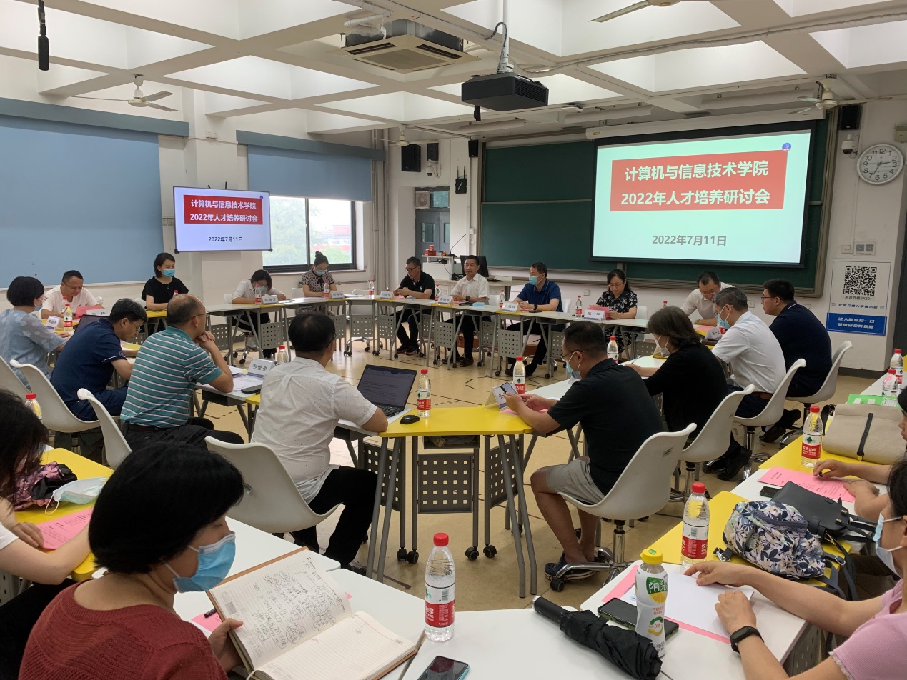 计算机与信息技术学院于7月11日下午在思源西楼501智慧教室召开了2022年人才培养工作会议。伟德国际1946bv官网党委常委、副校长余祖俊、本科生院副院长张华、研究生院副院长刘世峰、研工部副部长郭祎华、学校心理素质教育中心主任耿梅芳、就业与创业指导中心副主任梁英、发展规划与学科建设处副处长宋飞、校团委副书记任一豪、对外联络合作处副处长陈磊受邀参加了会议。伟德国际1946bv官网全体院领导、专业责任教授、二级机构教学主任、教学科、研究生科、团委和学院教师代表参加了会议。会议由伟德国际1946bv官网院长蔡伯根主持。