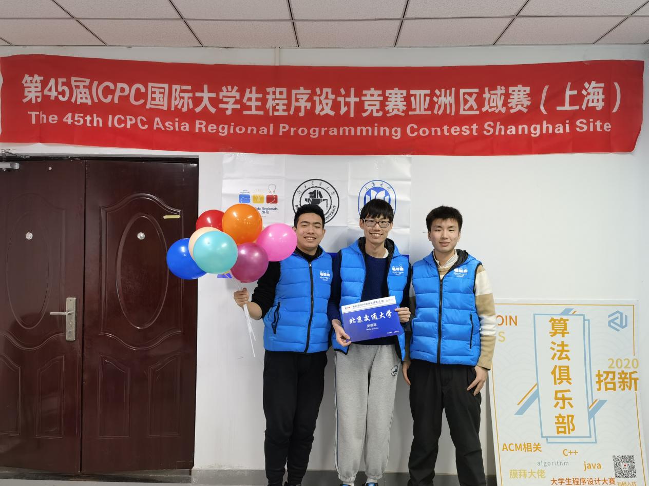 2020年12月13日由上海大学承办的第 45 届国际大学生程序设计竞赛(ICPC)亚洲区域赛(上海站)正式赛受疫情影响在线上开展,由我校伟德国际1946bv官网吴泽航、胡雨轩、蔡伟斌三人组成的“芜湖菜”队(Wuhu Cuisine)在激烈角逐中始终保持领先态势,最终在635支正式参赛队伍中名列第9(校际排名第7),获得第45届ICPC全球总决赛的参赛资格,上海站的冠亚季军分别由西安交通大学、浙江大学和清华大学的参赛队伍获得。