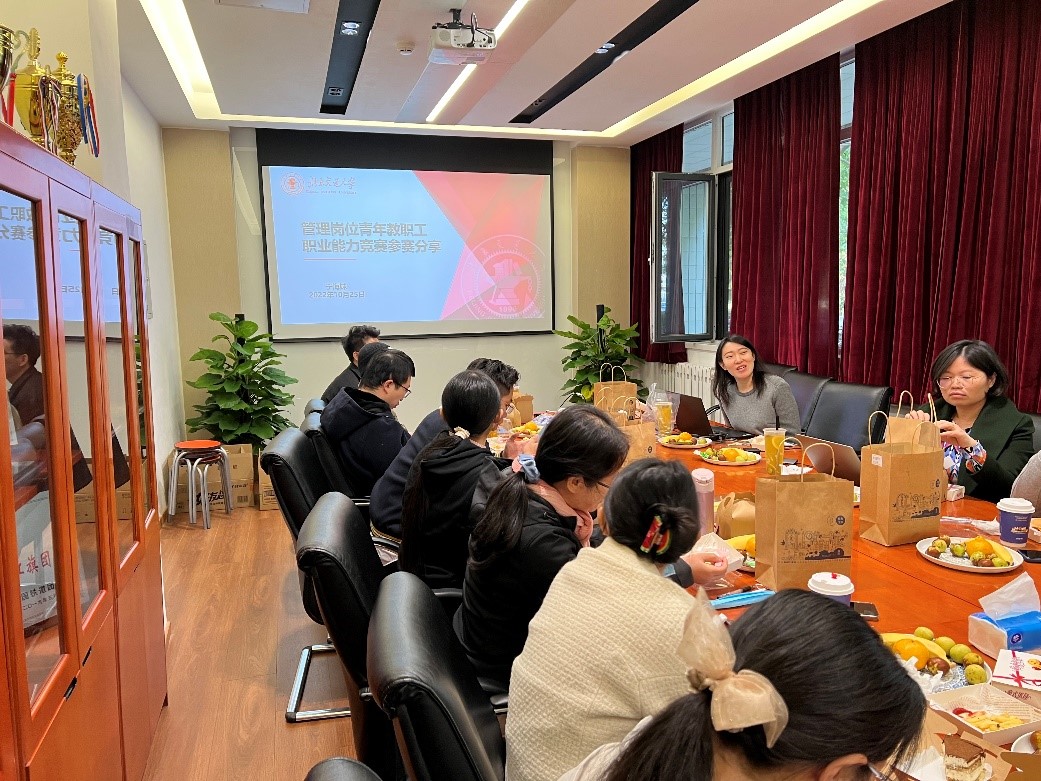 随后,于海妹老师结合参加伟德国际1946bv官网第一届管理岗位青年教职工职业能力竞赛的心得做了题为《管理岗位青年教职工职业能力竞赛经验分享》的报告,对赛程的要求,自己的准备工作做了详细的介绍,强调了专业知识、公文写作、语言表达等能力对管理岗人员的重要性。她总结,充分的准备、日常的积累、平稳的心态是赢得此次比赛的关键。在座的老师深受启发,纷纷表示此次分享活动受益匪浅,并结合自己岗位工作实际,做了经验分享和问题分析,大家积极讨论,气氛融洽热烈。