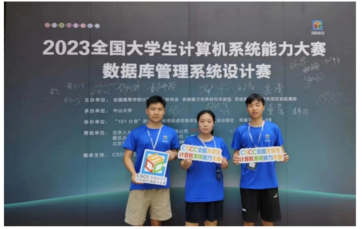 数据库管理系统设计赛获奖同学为计算机科学与技术专业大三学生王雨卉、欧阳煜威、舒江明,指导老师为来自《数据库系统原理》课程组的王宁老师。以上同学在首届数据库赛道基于大赛提供的原型系统框架,实现了存储管理、查询处理、事务处理等核心功能,并提出了切实可行的性能优化方案。