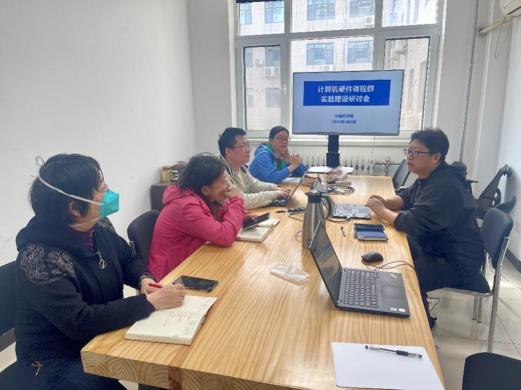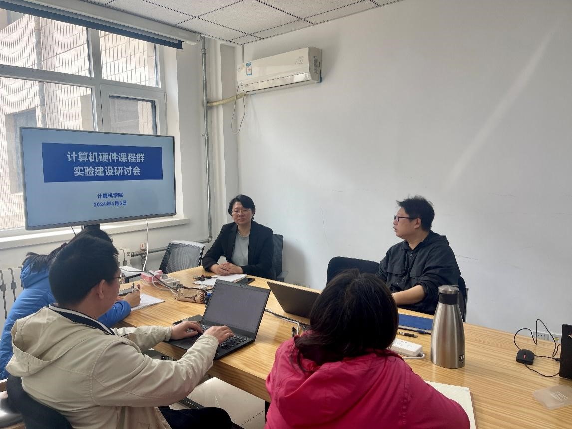 2024年4月8日,计算机硬件课程群实验建设研讨会在九教北202召开。硬件类课程任课教师代表诸强副教授、董岚副教授、万丽莉副教授、李宗辉副教授、唐宏高级工程师、教学科黄彧老师等参加了会议,会议由熊轲副院长主持。