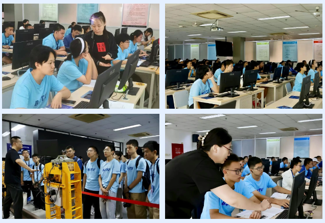在实践活动中,教师团队精心准备了技术讲解、虚拟仿真实验、快问快答、实验室参观等丰富有趣的环节。利用自主研发并上线国家虚仿实验空间(ilab-x)的“面向高铁轨道巡检的视觉感知虚拟仿真实验”,设置了循序渐进的三个模块学习内容:“认知—传感器”模块,了解铁路发展历程、传承高铁精神,熟悉轨道基础设施构成,掌握巡检用视觉传感器工作原理及巡检方法;“系统—轨道巡检视觉感知”模块,了解视觉感知系统的构建方法,执行不同环境下的轨道巡检任务;“智能—轨道病害识别”模块,了解基于机器视觉以及自主研发“天佑大模型”轨道病害识别工作原理,体验病害识别的程序设计和实现流程。
