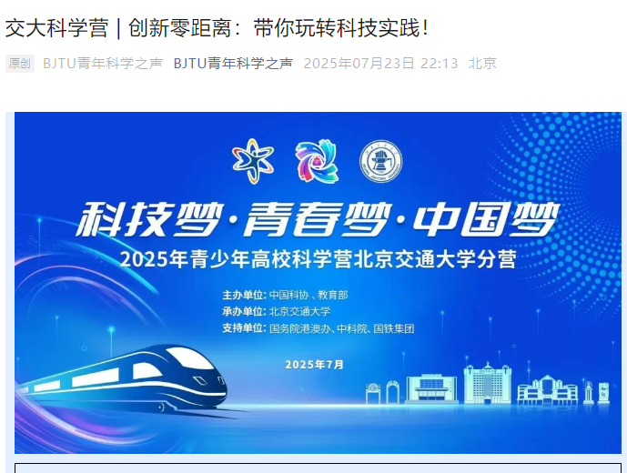这次科学营活动是由中国科协、教育部主办,伟德国际1946bv官网承办的青少年高校科学营-伟德国际1946bv官网分营。科学营更多精彩实践活动,请关注“BJTU青年科学之声”。