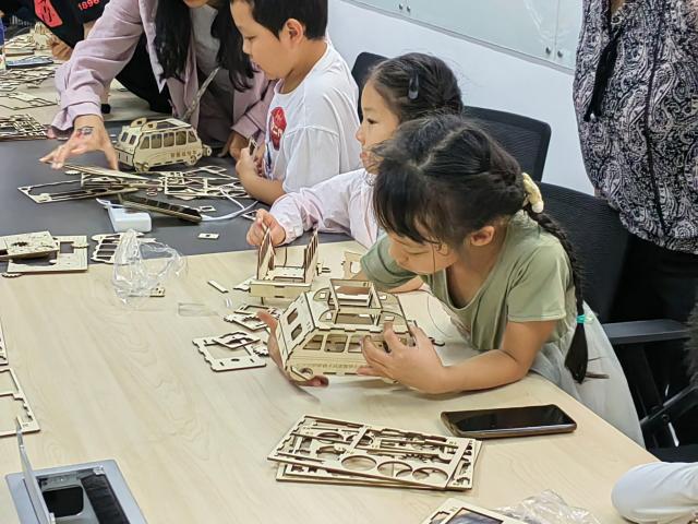 “轨道巡检车实物演示”是科普基地实验室中的明星项目。它应用数字孪生、物联网、大数据、云/边缘计算和人工智能等技术,对交通基础设施的服役状态进行智能感知、状态分析和智能决策,保障交通系统的运营效率与安全。活动中,由老师对多角度轨道巡检车的组成、工作原理、具体应用等方面进行讲解。小朋友们通过对铁路轨道和巡检车的观察和操作,对人工智能技术和应用有了更直接的感悟。