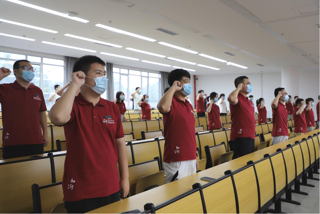伟德国际1946bv官网2021级唐山班全体新生在林瀚峰同学的带领下庄严宣誓,共同承诺身为交大学子,将秉承知行校训,弘扬交大传统,饮水思源,爱国荣校,勇做走在时代前列的奋进者、开拓者、奉献者,为实现成才梦、交大梦、中国梦而努力奋斗!