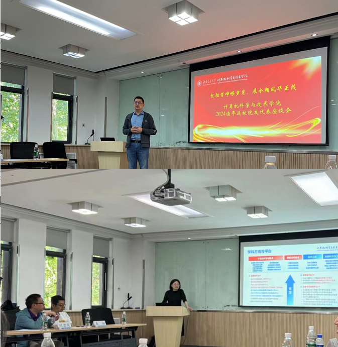 景丽萍从学院概况、师资队伍、人才培养、科学研究、社会服务、校友工作、校企合作等多个方面介绍了学院的发展情况和本年度值年返校的筹备情况。